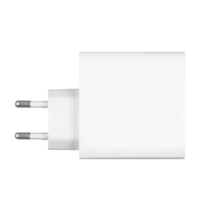 Ładowarka ścienna z wyjściem USB oraz 2 wyjściami USB typu C, moc całkowita do 65W, wejście 100-240V, wyjście USB typu C 5-15V/3A, wyjście USB 5-12V/1.5-3A, do użytku wewnątrz pomieszczeń