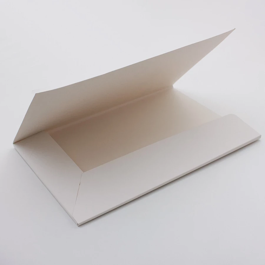 podwójny grzbiet, elegancki o zabarwieniu ecrue, wycięcia na wizytówkę